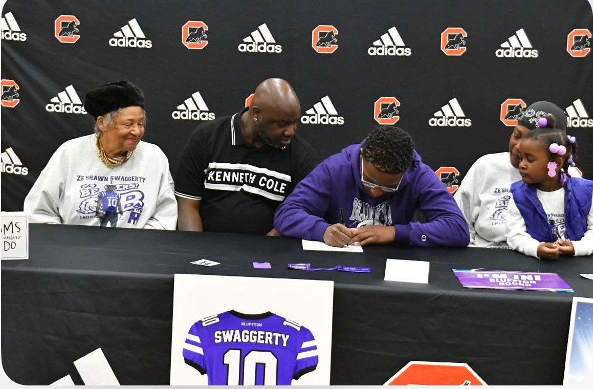 PATTY BLACKBURN Marshall County Post Ze’Shawn’s family was present as he signed the letter of intent to continue his football career at Bluffton University.