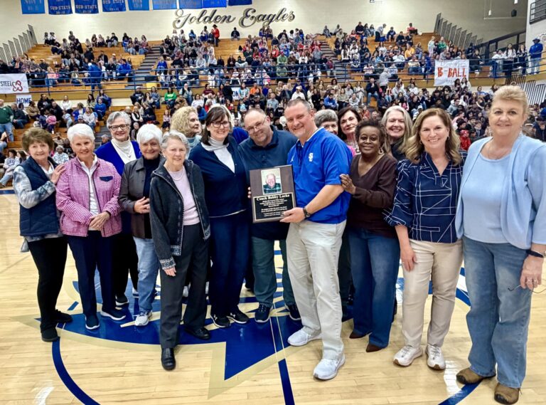 Post photo by Gary Johnson Family and team members of the Eaglette 1964 and 1974 state championship teams gathered at the Shelbyville Central basketball game on Friday night to present a plaque…