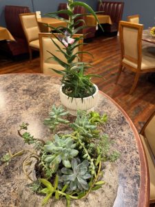 The monthly design assignment was a miniature arrangement. The horticultural assignment was succulents. Many specimens were shared. Frances Hayes was the club judge.