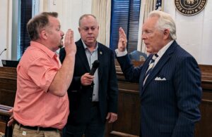 The City of Shelbyville held an official ceremonial ribbon cutting for the North Brittain Street and Stormwater Project Wednesday morning. Buck Vallad, public works director, and Will Owen III, vice-president of Griggs & Maloney Engineering, handled the scissors as Shelbyville Mayor Randy Carroll looked on along with city council members, city administrator