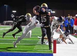 Severen Garman drives to the end zone and reaches the pylon for a Viking touchdown. (Post Photo by Rickey Clardy)