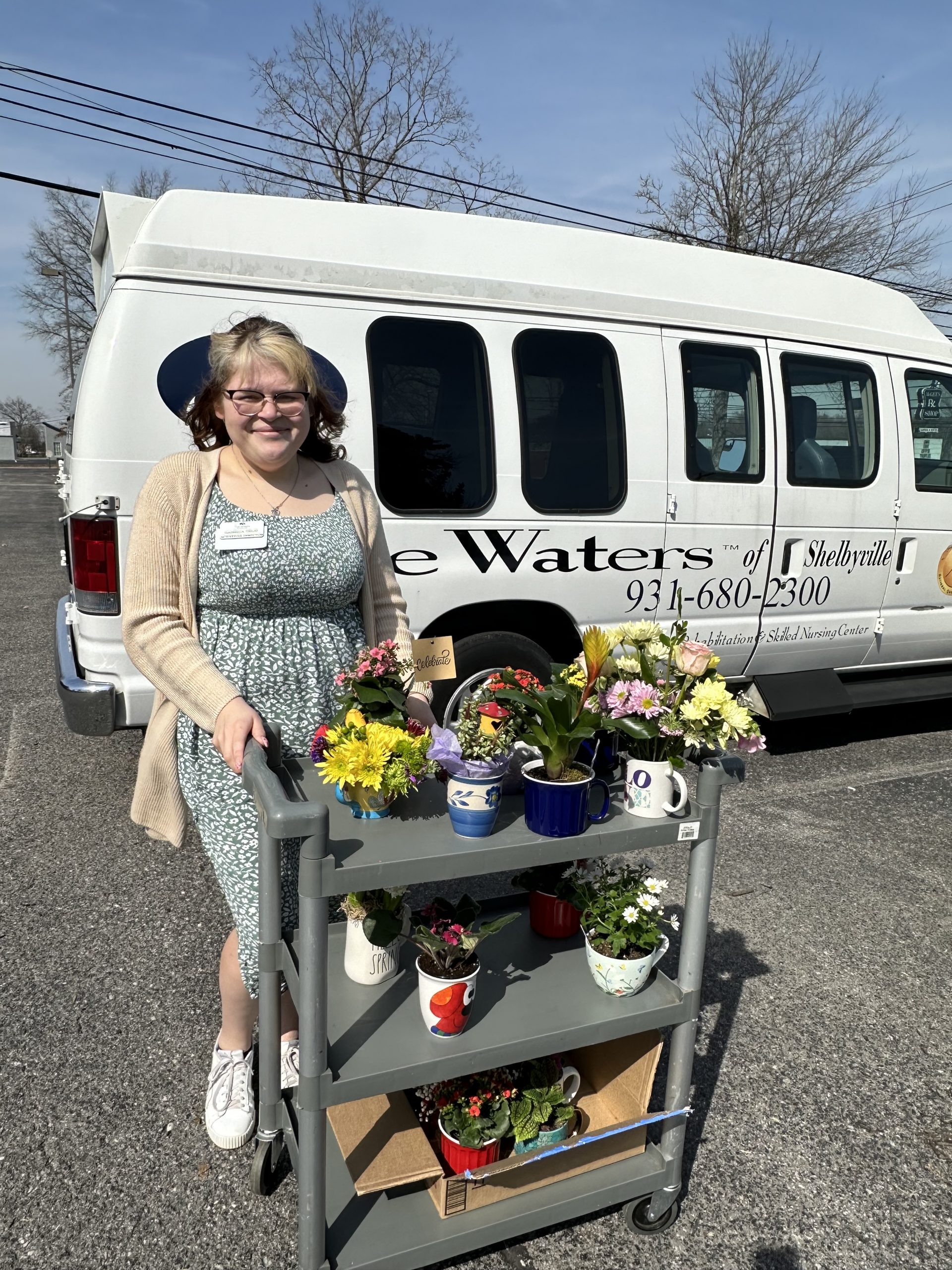 Club members had prepared cups of flowers for residents of The Waters of Shelbyville which is a long term care and rehabilitation facility. Gabriela Trejo, Activities Director accepted the flowers on behalf of the facility.